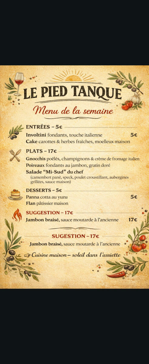 🍽️ Menu de la semaine – Le Pied Tanqué 🌞