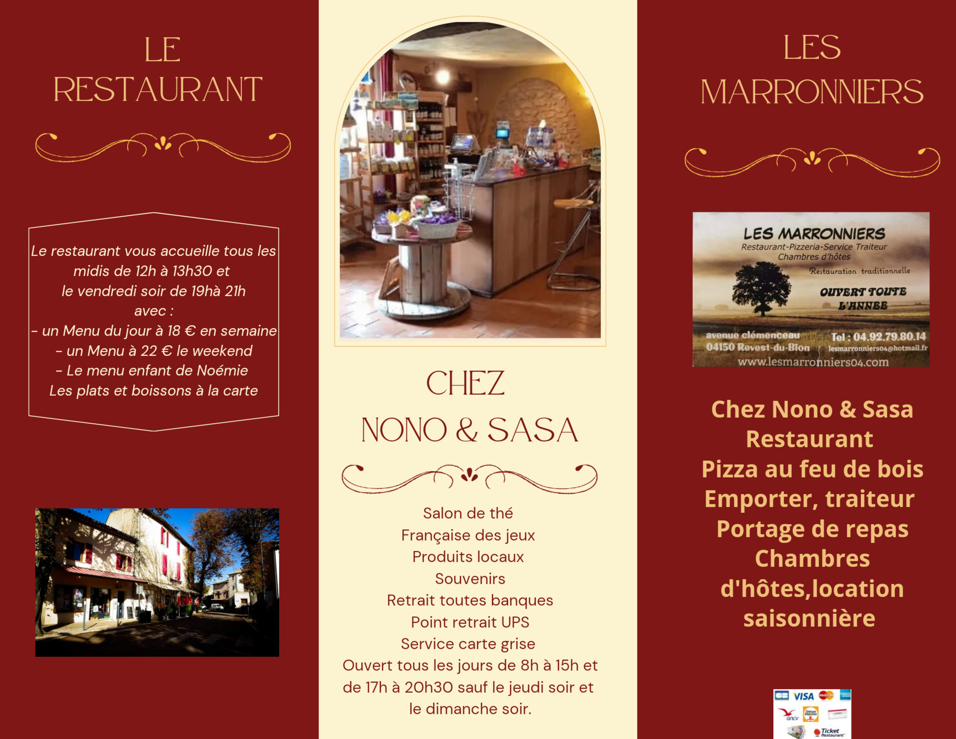Du côté de chez Nono et Sasa, il y a un salon de thé. On y déniche des produits locaux, des souvenirs, la Française des jeux. C'est également un point de retrait pour toutes les banques et un relais UPS avec un service de carte grise.