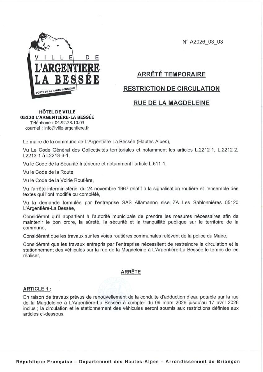 RESTRICTION DE CIRCULATION - RUE DE LA MAGDELEINE