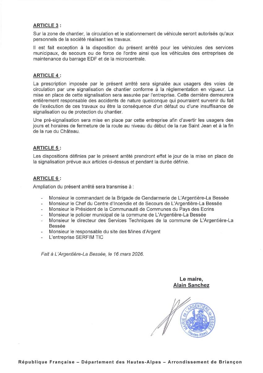 - à compter du mardi 7 avril au mardi 21 avril inclus, la route sera barrée et interdite à la circulation sur la rue du Sapey, à partir de l'intersection du chemin de la Blachière jusqu'à la microcentrale hydroélectrique, du lundi au vendredi, de 8h à 12h et de 13h30 à 18h.
