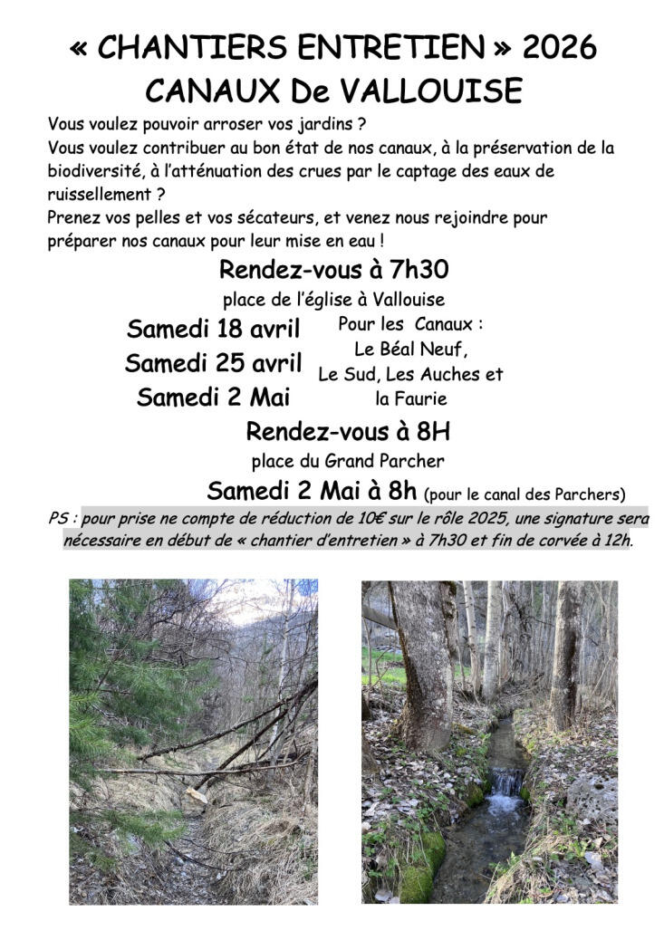 Chantiers entretien des canaux de PELVOUX