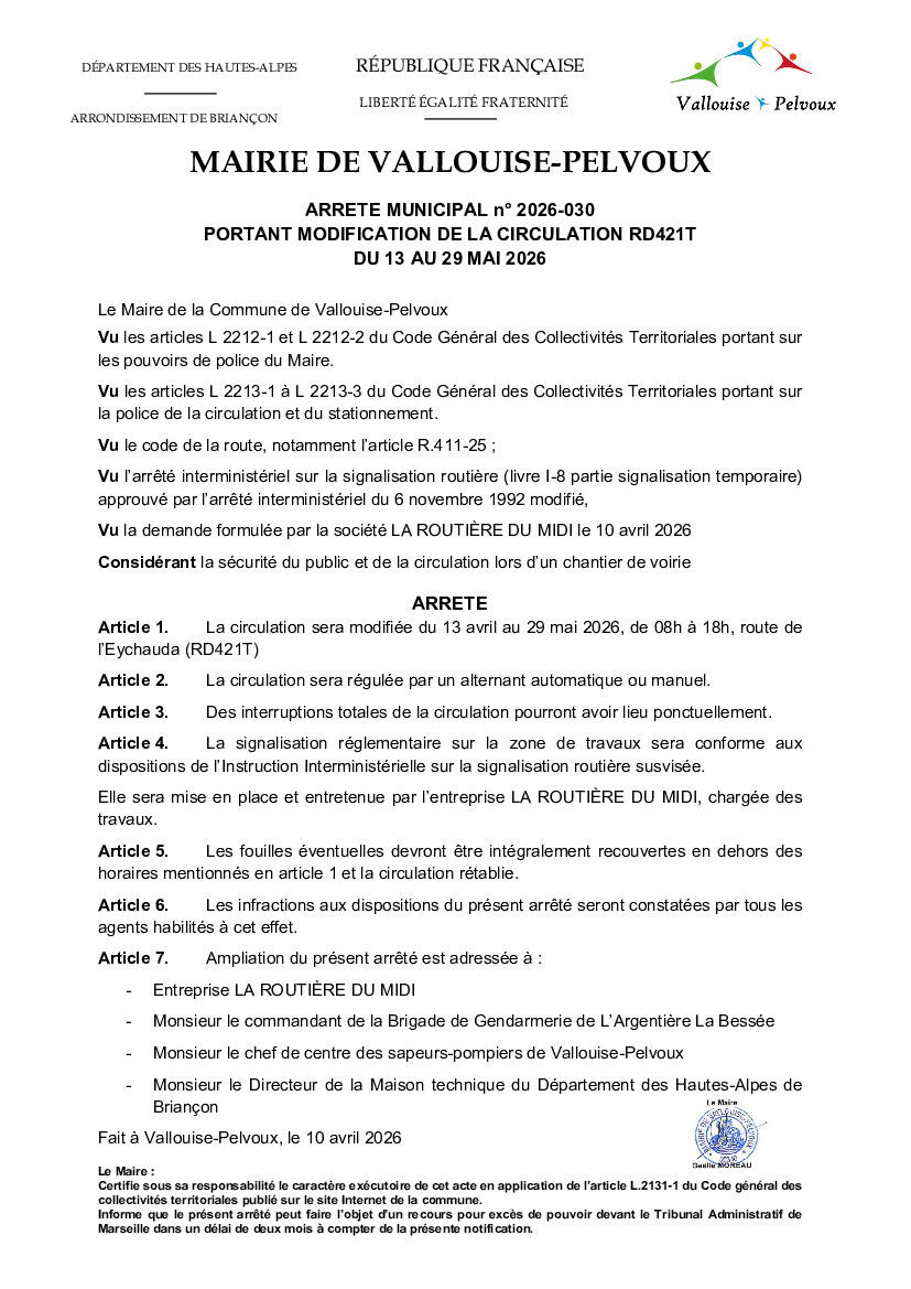 Votre mairie / Actualités / 2026-030 TEMP Circulation modifiee - RD421T - RoutiereMidi