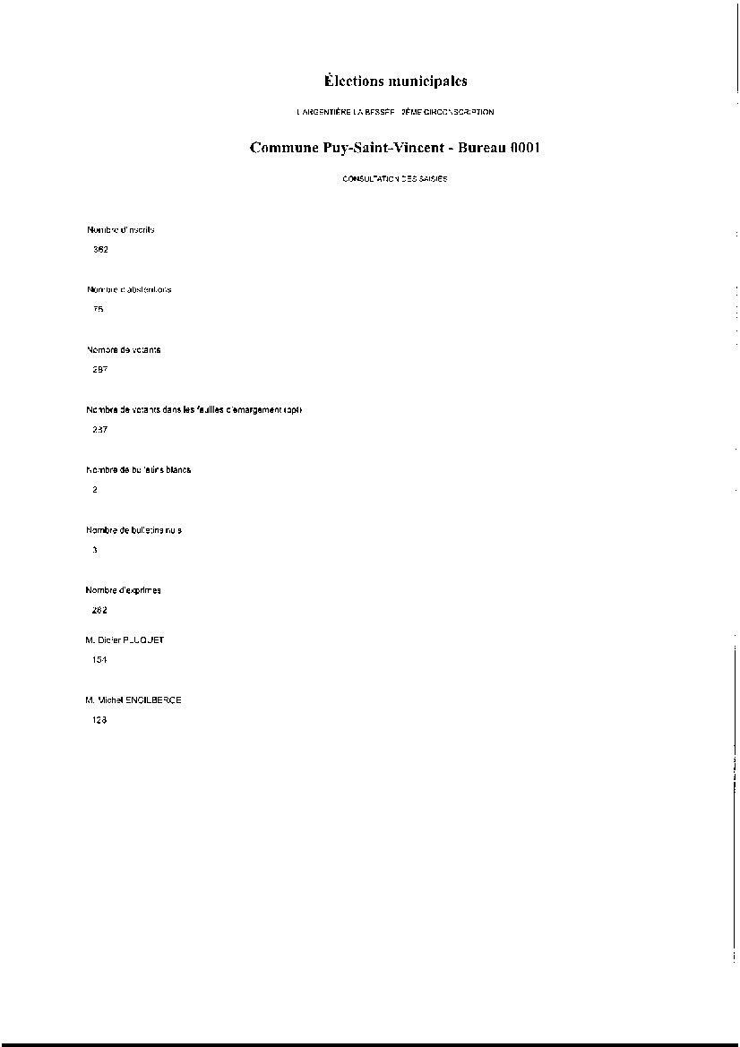 RÉSULTAT DES ÉLECTIONS DE PUY-SAINT-VINCENT
