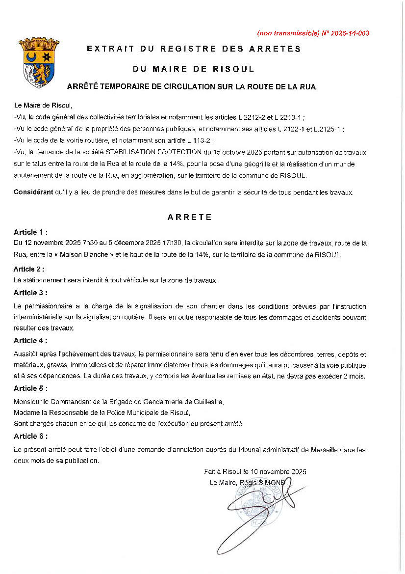 ROUTE DE LA RUA : RESTRICTIONS DE CIRCULATION