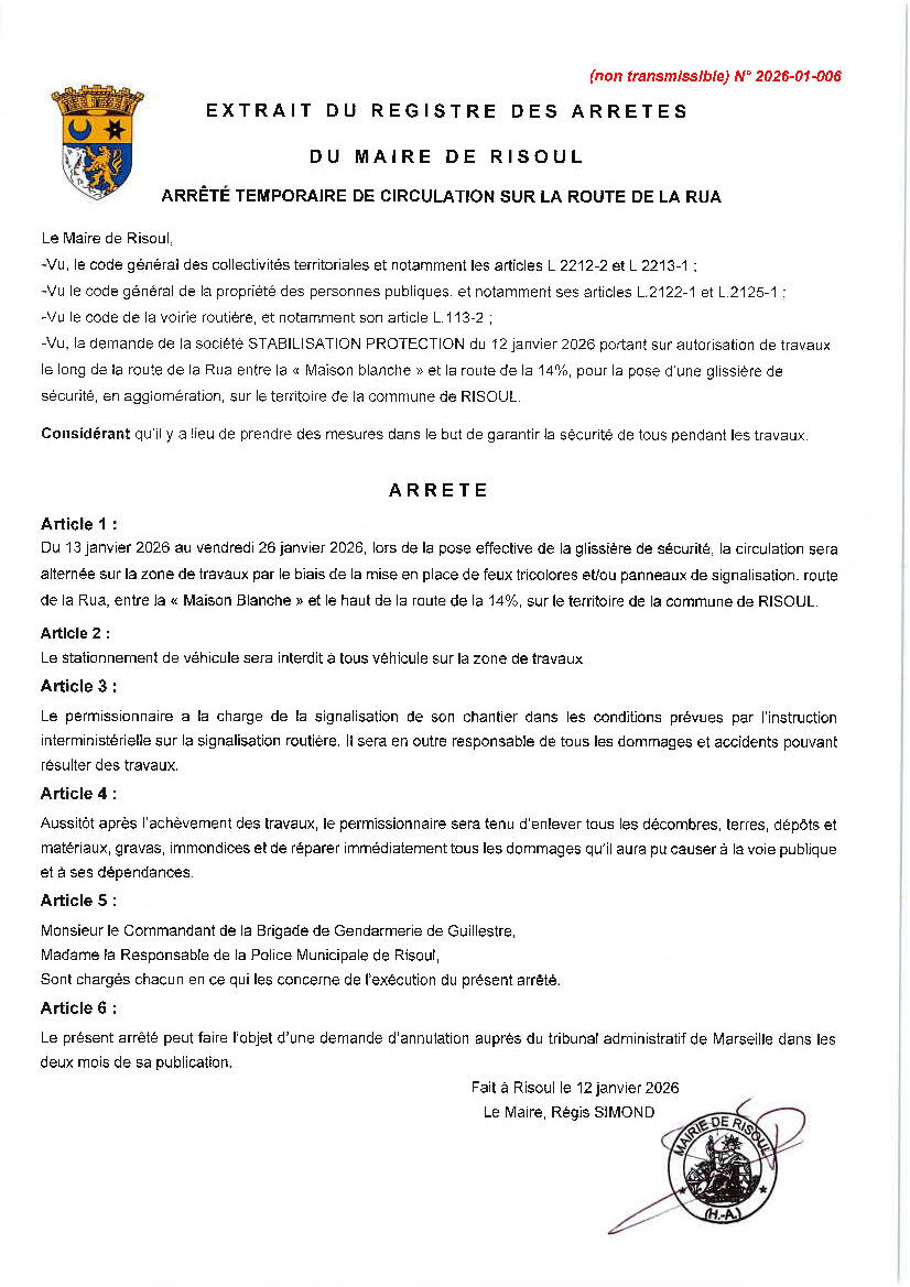 FERMETURE PORTION ROUTE DE LA RUA A PARTIR DU 12/11/2025