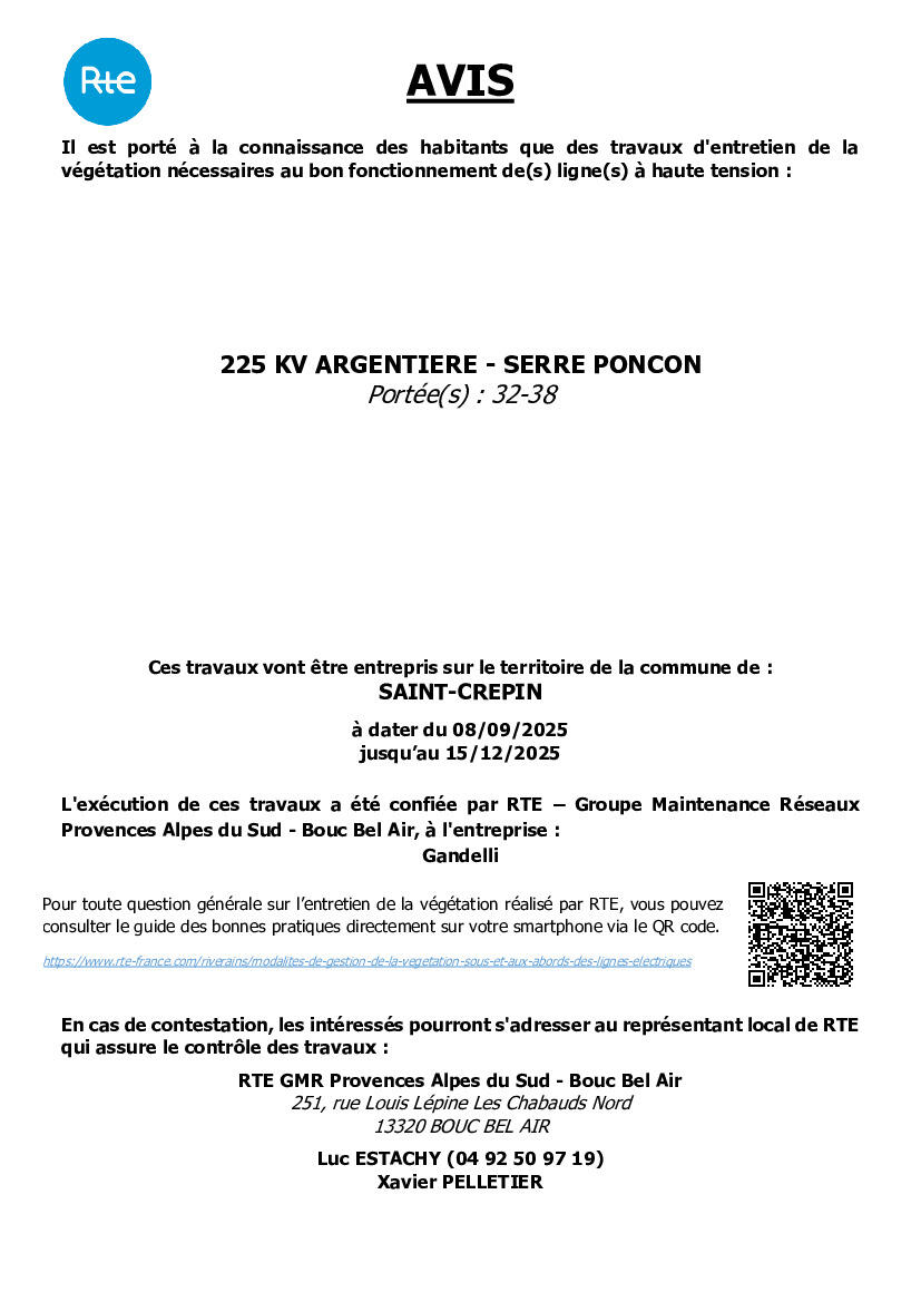 Travaux d'élagage par RTE du 08 Septembre au 15 Décembre