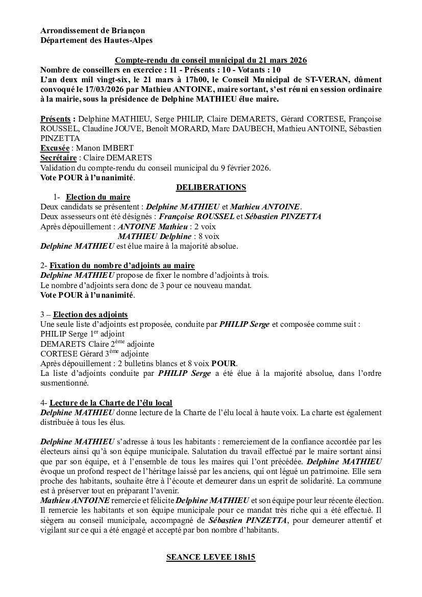 Compte-rendu du Conseil Municipal du 21 mars 2026.