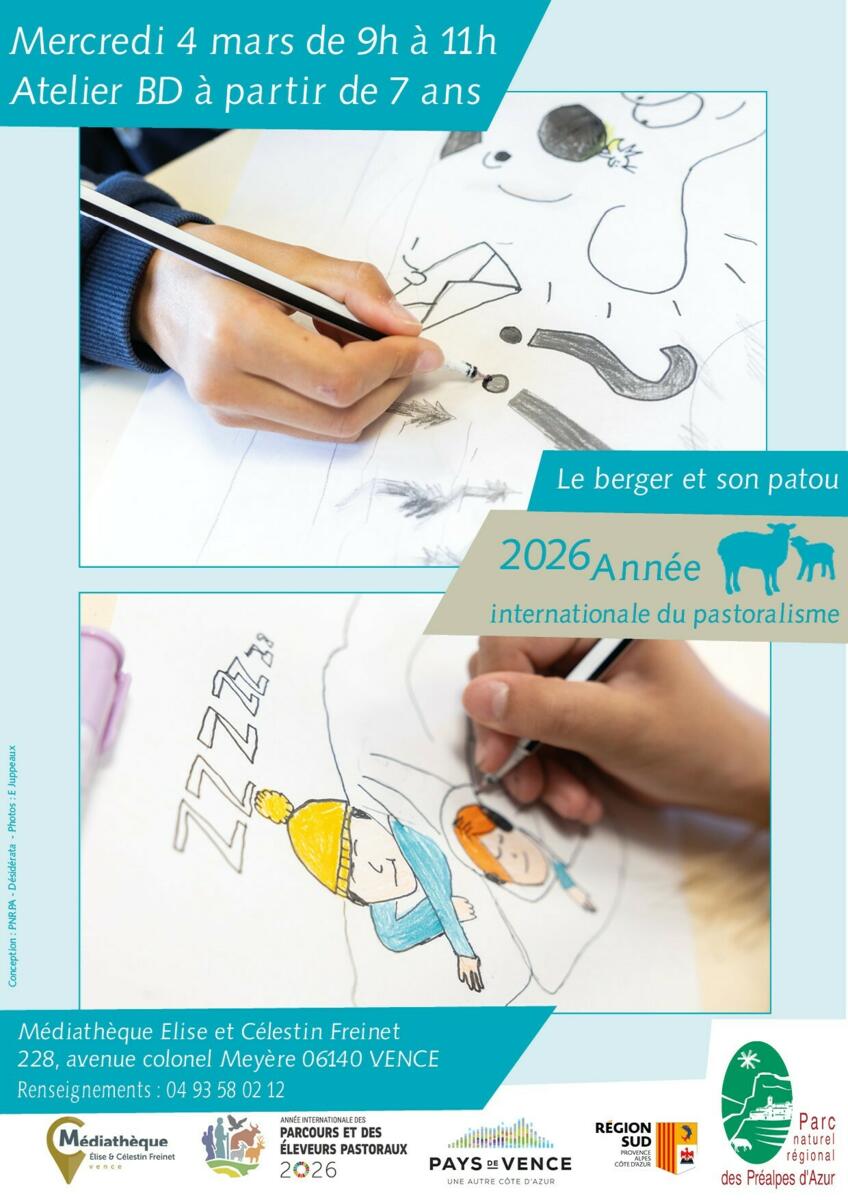 Mercredi 4 mars à la médiathèque de Vence, de 9h à 11h