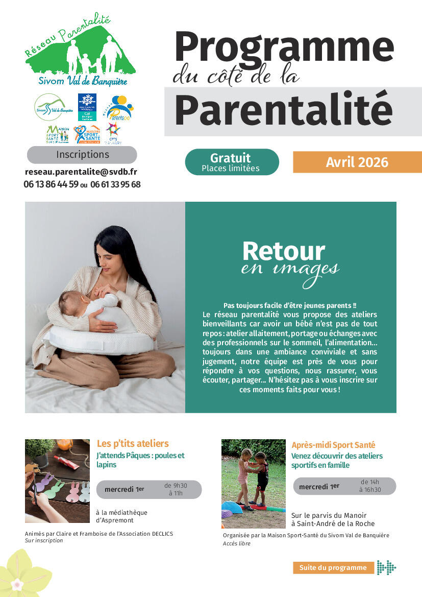 Programme parentalité SIVoM 06/04/2026 Actions parentalité pour le mois d'avril sur tout le territoire