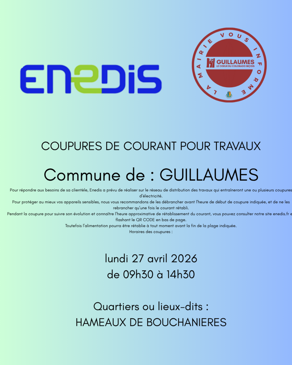 ENEDIS- COUPURE DE COURANT LE 27 AVRIL 2026 BOUCHANIERES