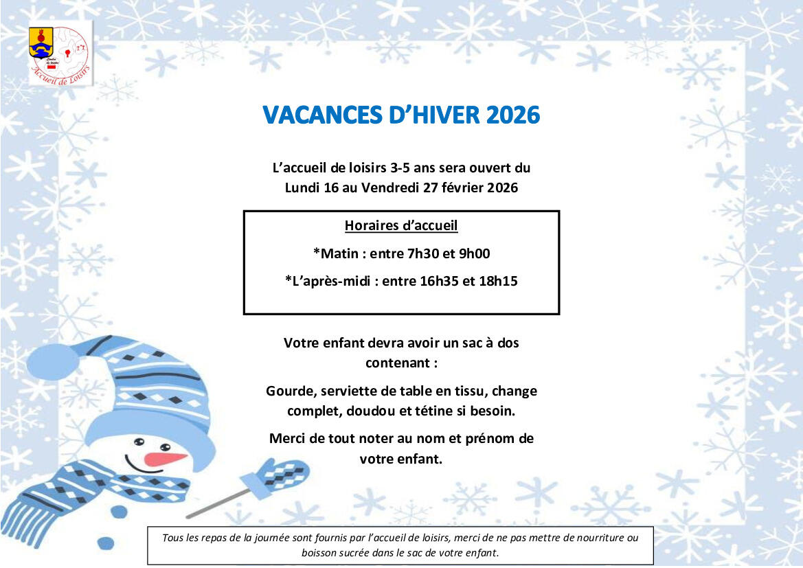 ❄️ Accueil de loisirs 3–5 ans – Vacances d’hiver 2026