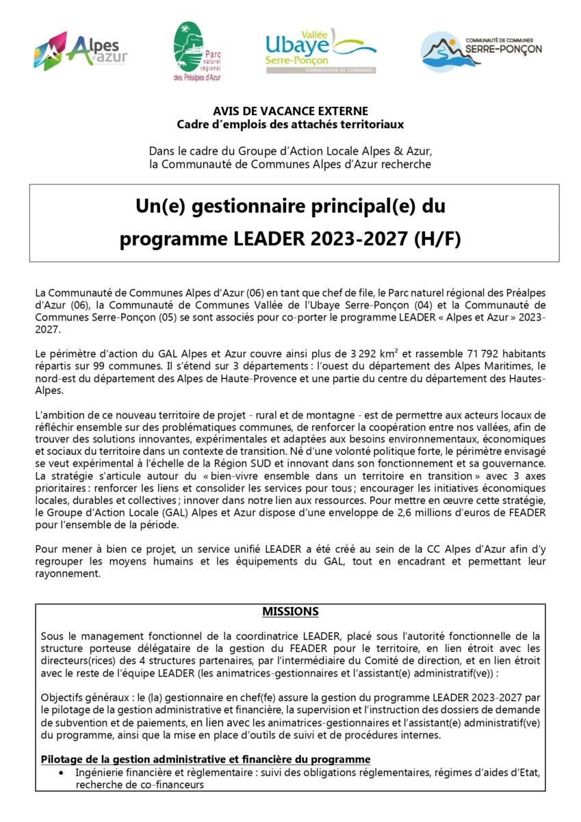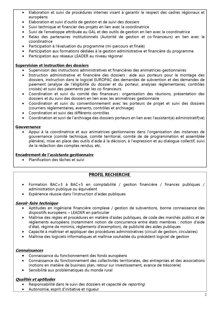- Un poste de gestionnaire principal du programme LEADER 2023-2027