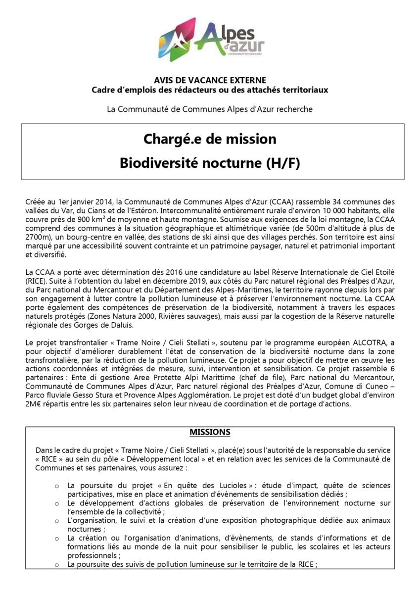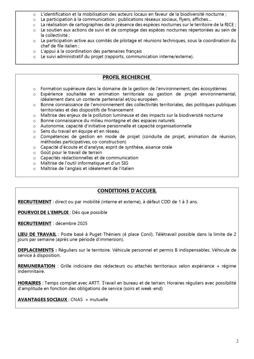 - Un poste de chargé de mission biodiversité