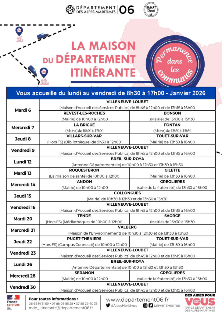 L’article Permanences de la Maison du Département Itinérante (MDDI) en janvier 2026 est apparu en premier sur Touët-sur-Var - Site officiel.