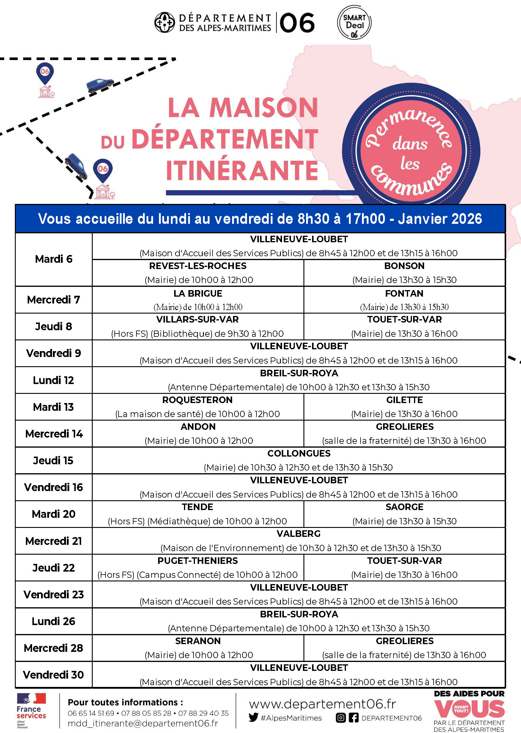 Permanences de la Maison du Département Itinérante (MDDI) en janvier 2026