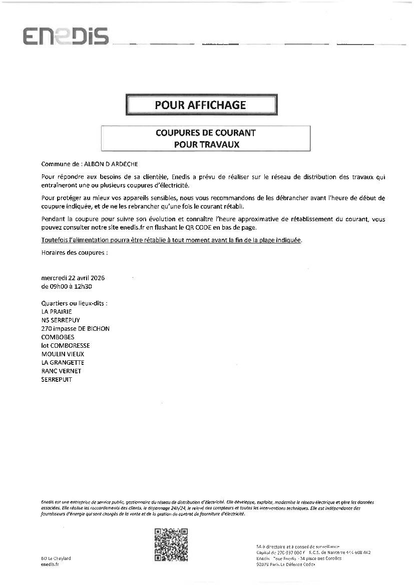 Coupures de courant pour travaux