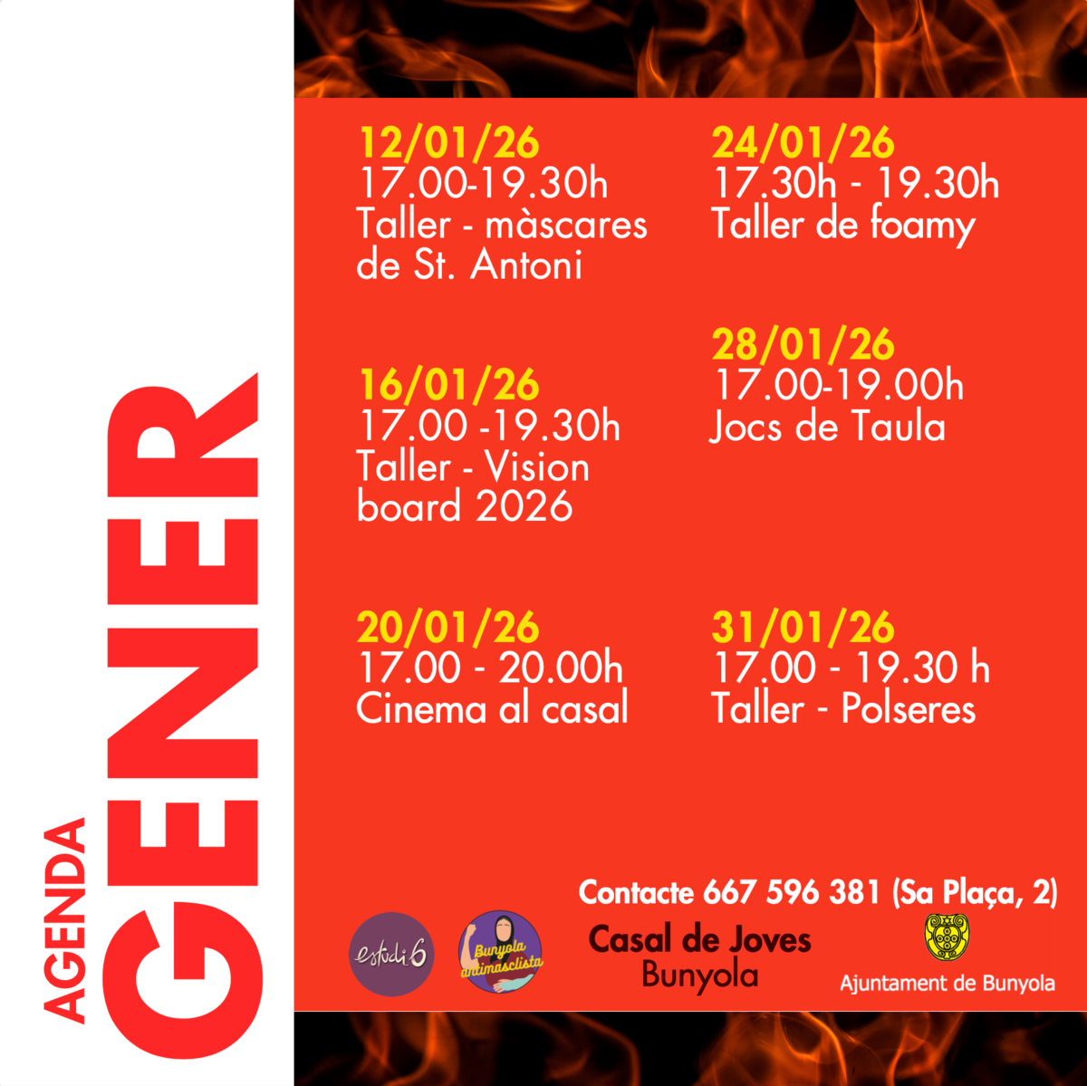 📅🔥 AGENDA DE GENER – CASAL DE JOVES DE BUNYOLA