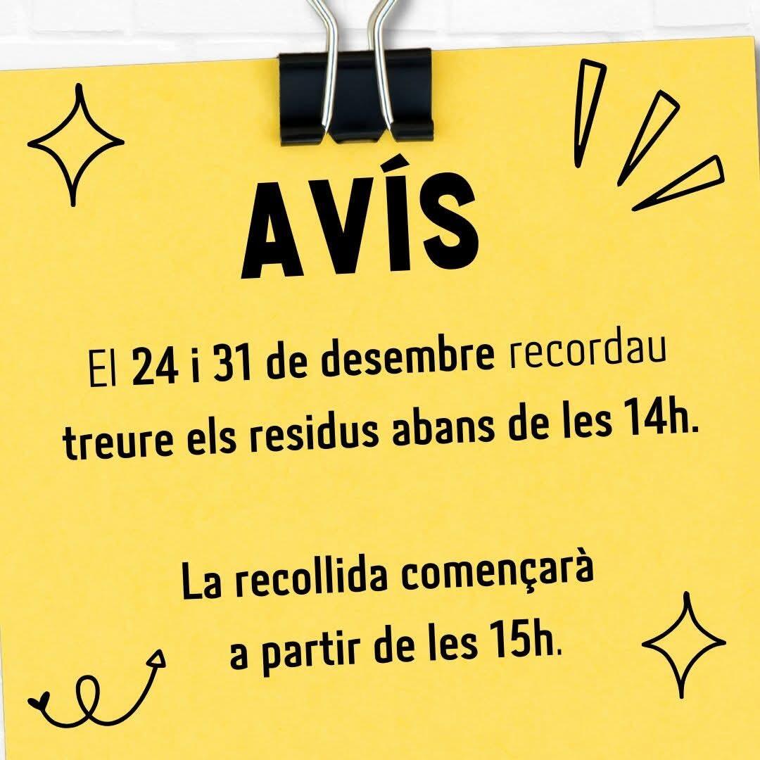 ♻️Els dies 24 i 31 de desembre, recordau treure els residus abans de les 14 h.