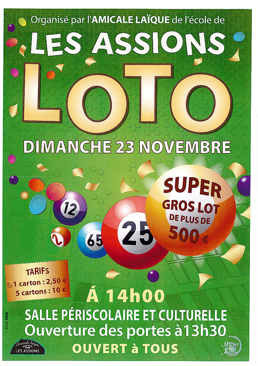 LOTO ORGANISÉ PAR L'AMICALE LAÏQUE