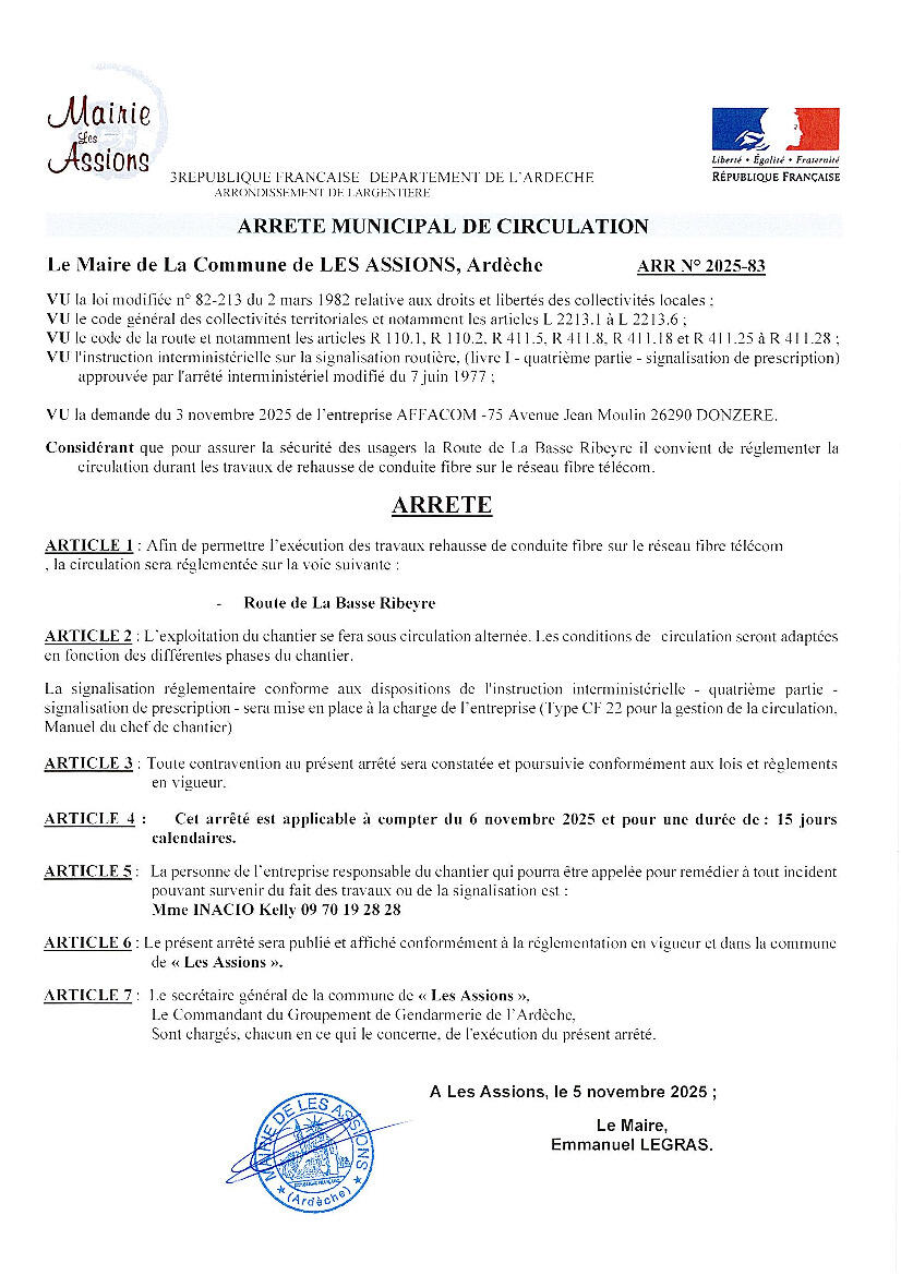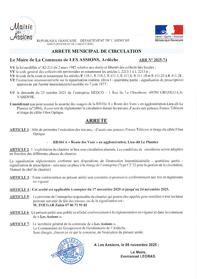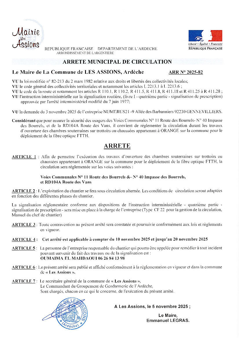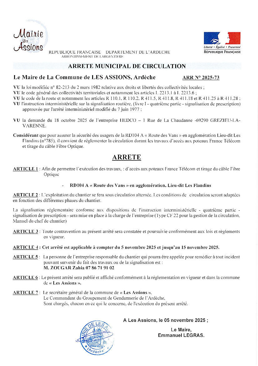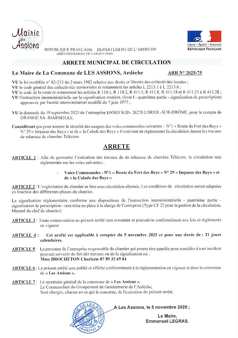 ARRÊTÉS DU MAIRE POLICE DE CIRCULATION