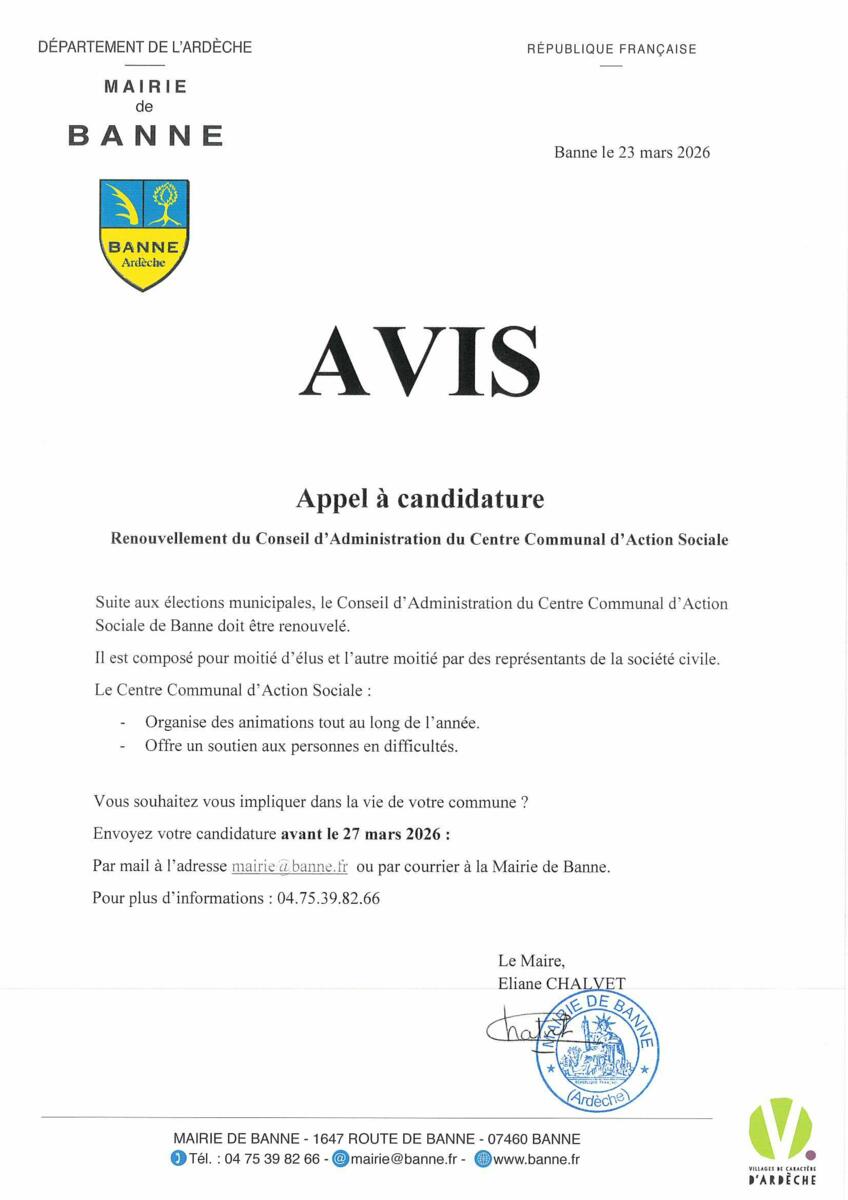 Suite aux élections municipales, le Conseil d'Administration du Centre Communal d'Action Sociale de Banne doit être renouvelé.