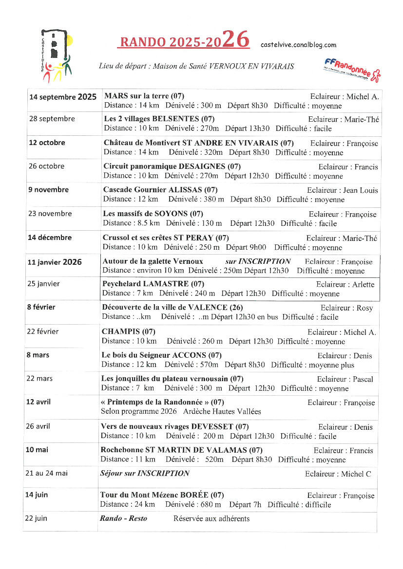 ASSOCIATION CASTELVIVE - RANDO 2025-2026