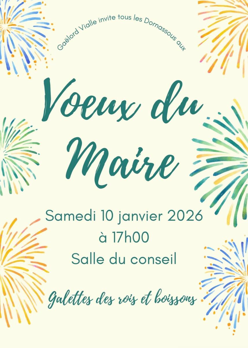 Gaëlord Vialle, maire de Dornas, les adjointes et le conseil municipal invitent tous les dornassous aux voeux du maire.
