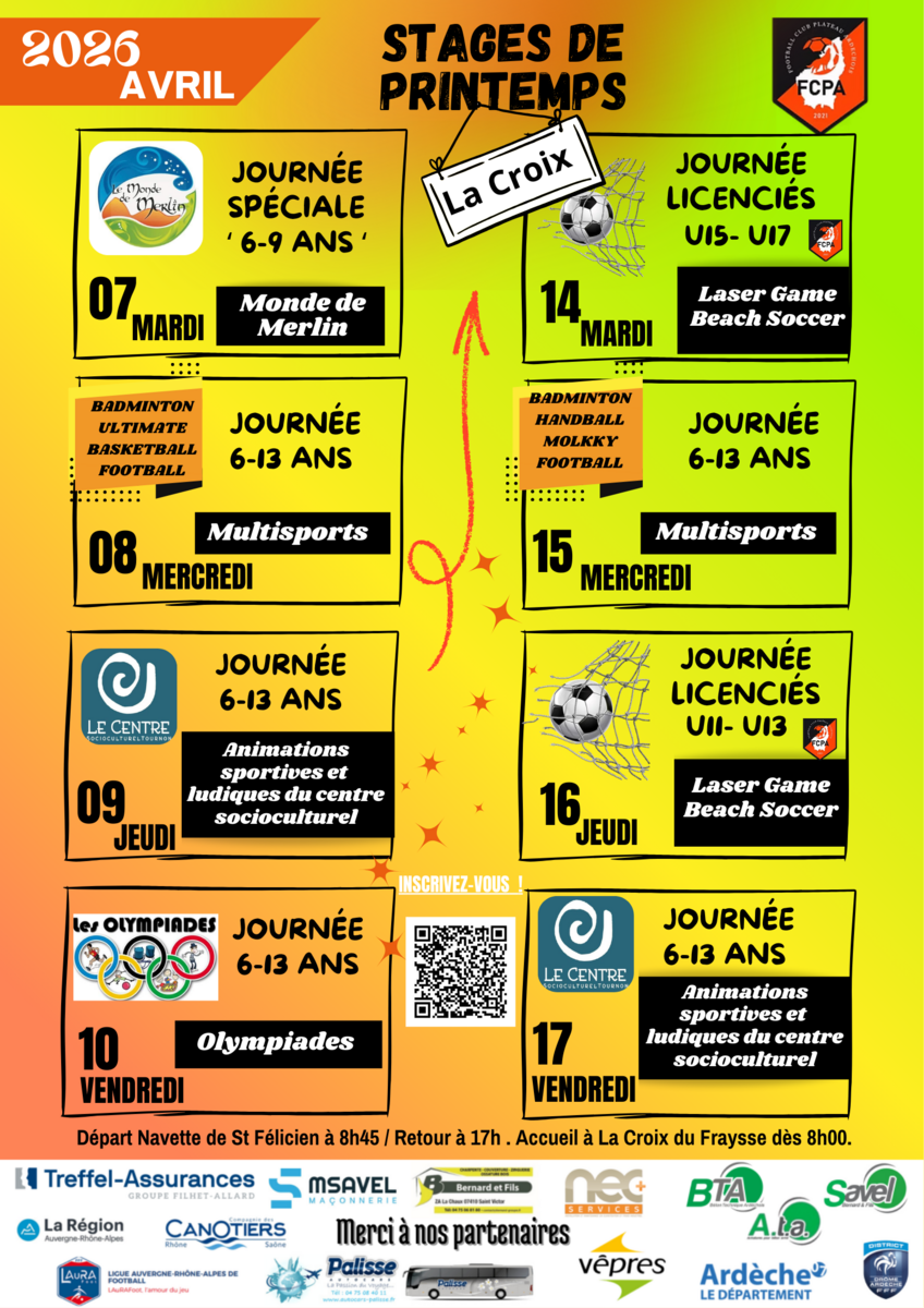 Stage de printemps au stade de la Croix du Fraysse 14/04/2026 du 07 au 17 avril organisé par FCPA Source : Mairie d'Étables