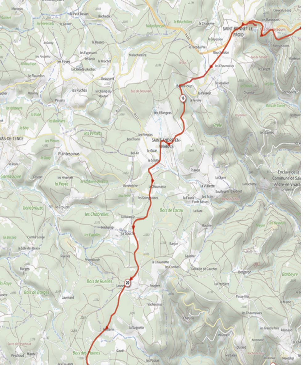 La compétition emprunte un tracé traversant partiellement la commune de St André en Vivarais plan ci joint.
