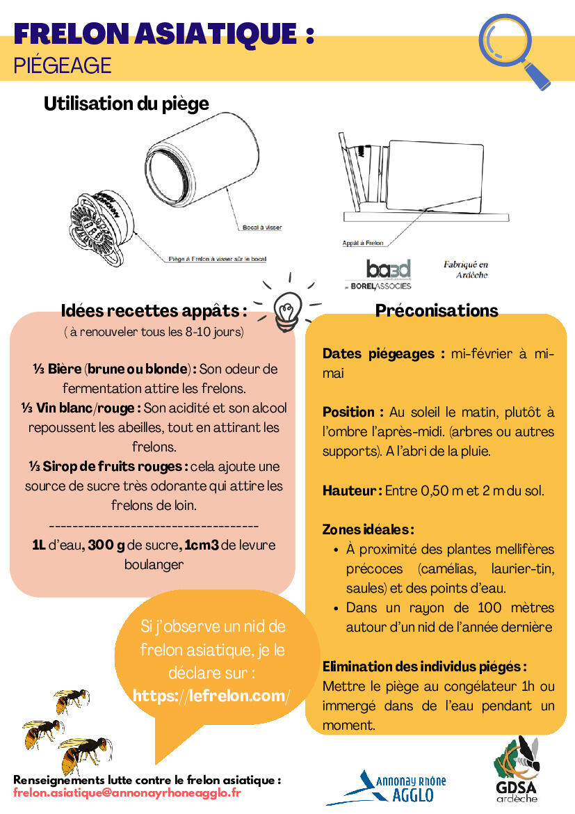 • A destination des particuliers (prioritairement ceux aillant eu un nid de frelons les années précédentes) : 6 petits pièges (Modèle Good4Bees)