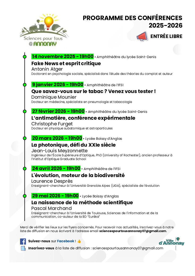 Votre mairie / Agenda / Conférence Science pour tous à Annonay!