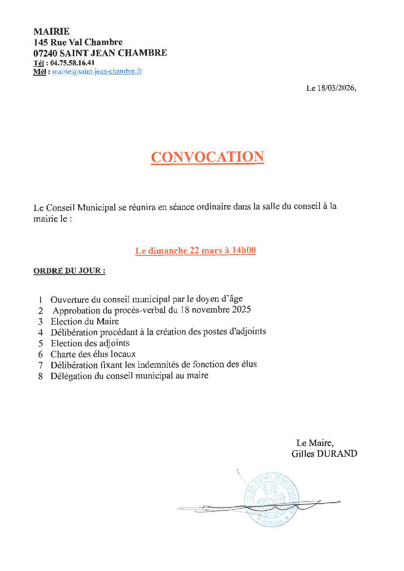 Toute l'actualité de Mairie de Saint-Jean-Chambre