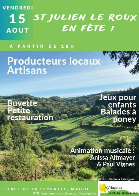 Fête de Saint Julien Le Roux le 15 août 2025 à partir de 18h