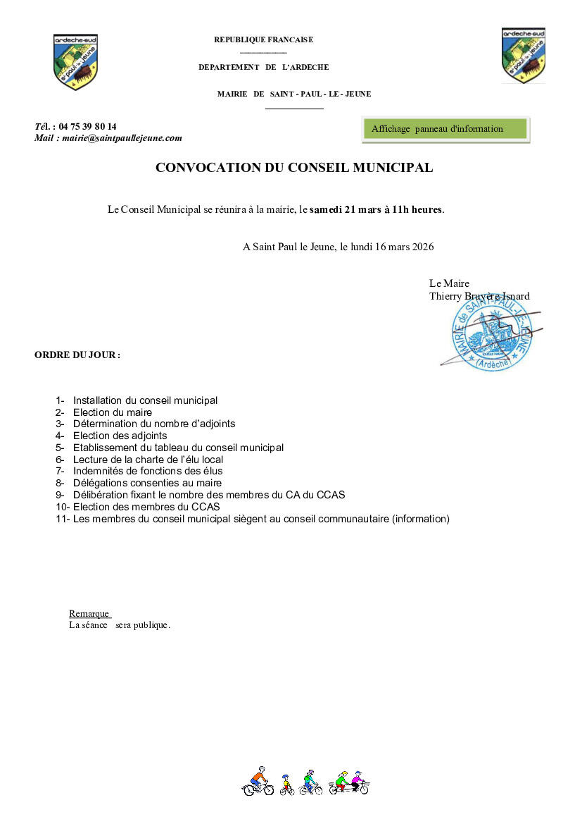 Conseil Municipal Le Samedi 21 Mars À 11 Heures 16/03/2026 Le prochain Conseil municipal aura lieu en Mairie le samedi 21 mars à 11 heures La séance est publique.