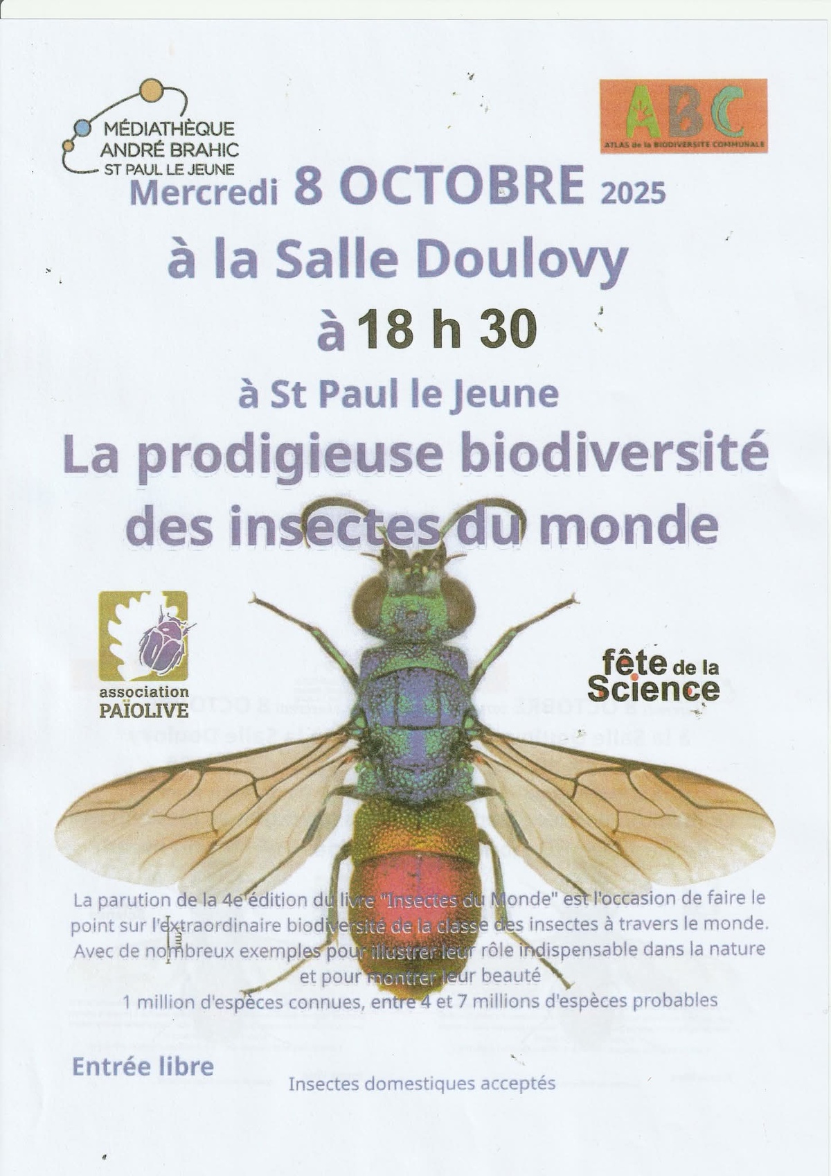 / La prodigieuse biodiversité des insectes 8 octobre à 18h30