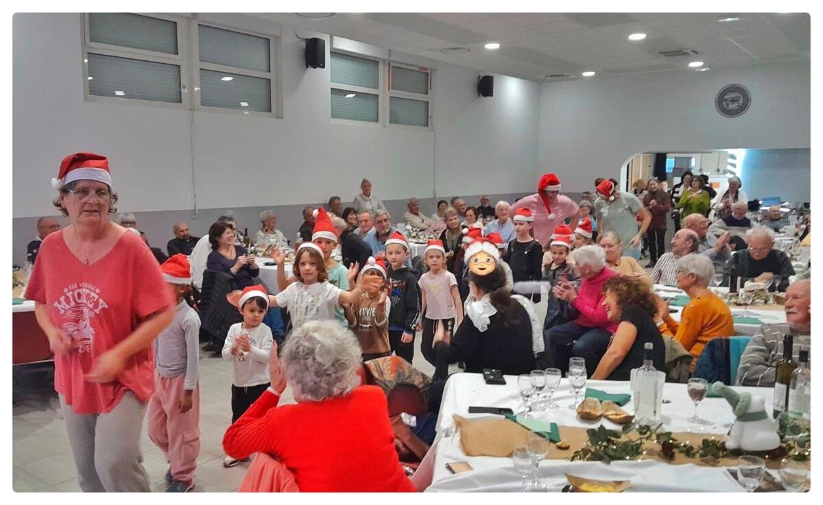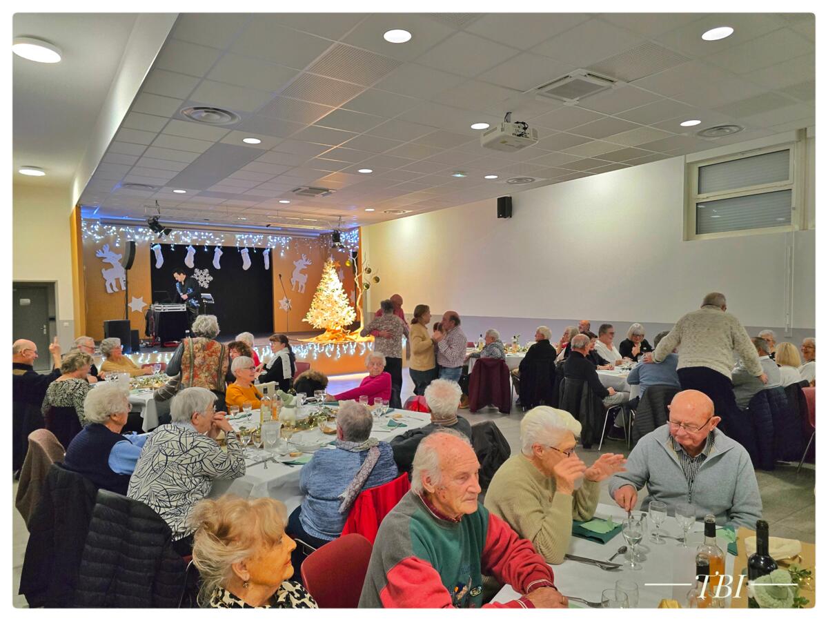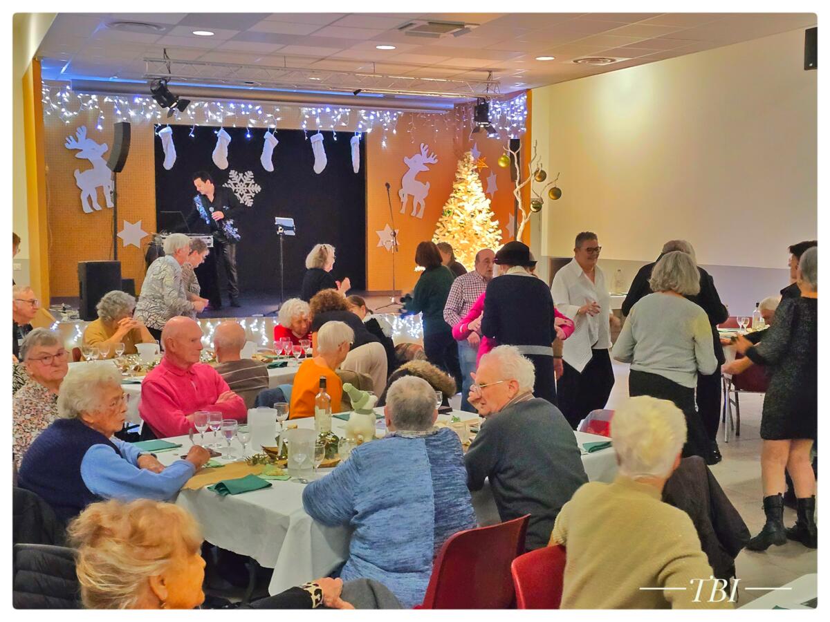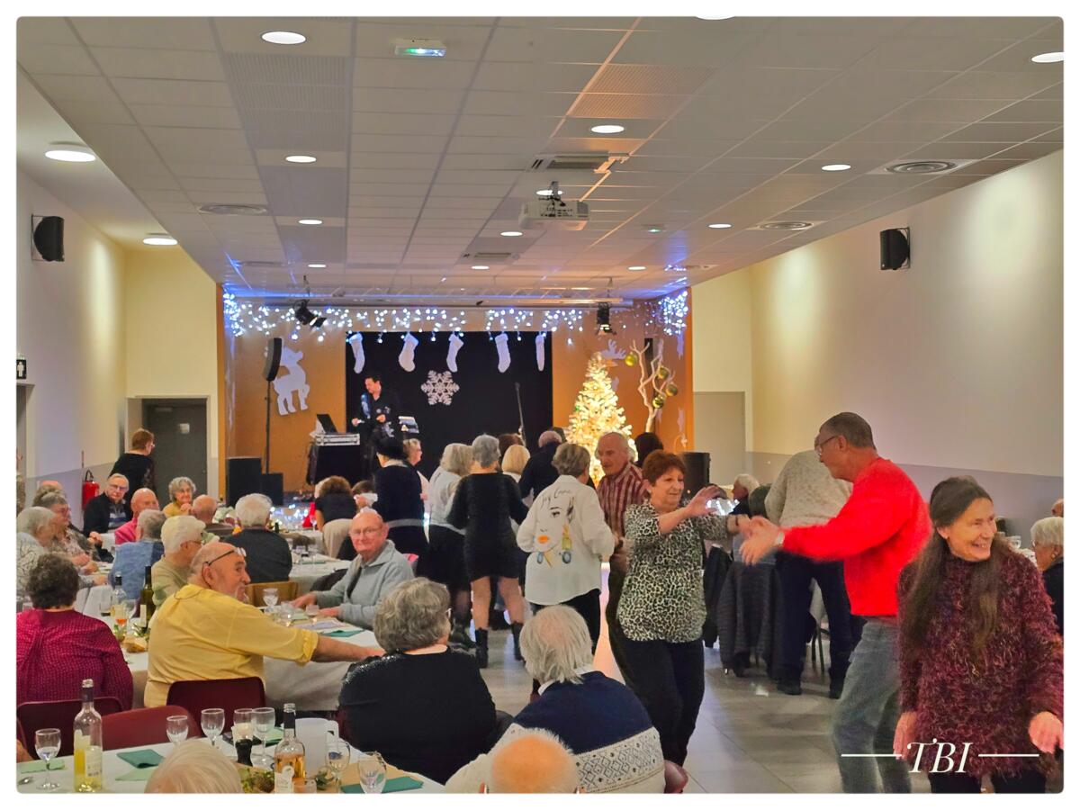 Cette année  encore  une réussite  pour le repas des aînés.  Plus de 100 personnes se sont retrouvées autour d 'un repas préparé  par notre traiteur  local et accompagné  par un chanteur hors pair. L 'arrivée  des enfants  du centre de loisirs a été un moment fort pour le bonheur de tous.
