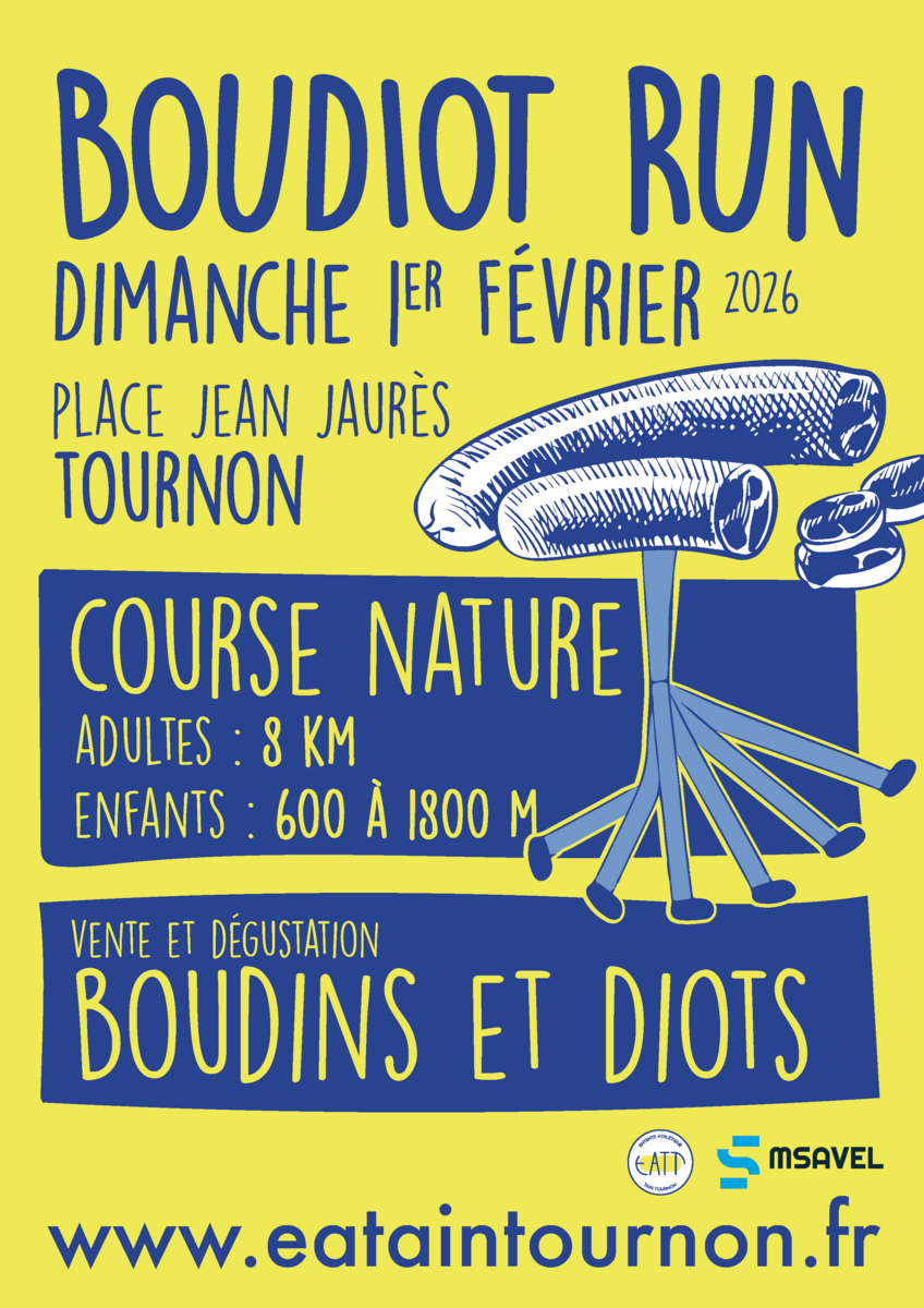 Course nature Adultes : 8 km Enfants : 600 à 1800 m Vente et dégustation : boudins et diots Inscriptions: www.eataintournon.fr