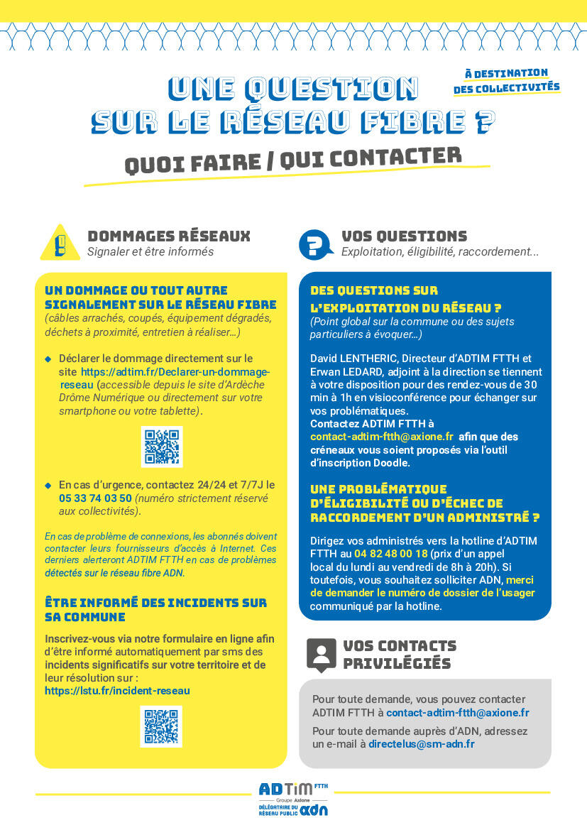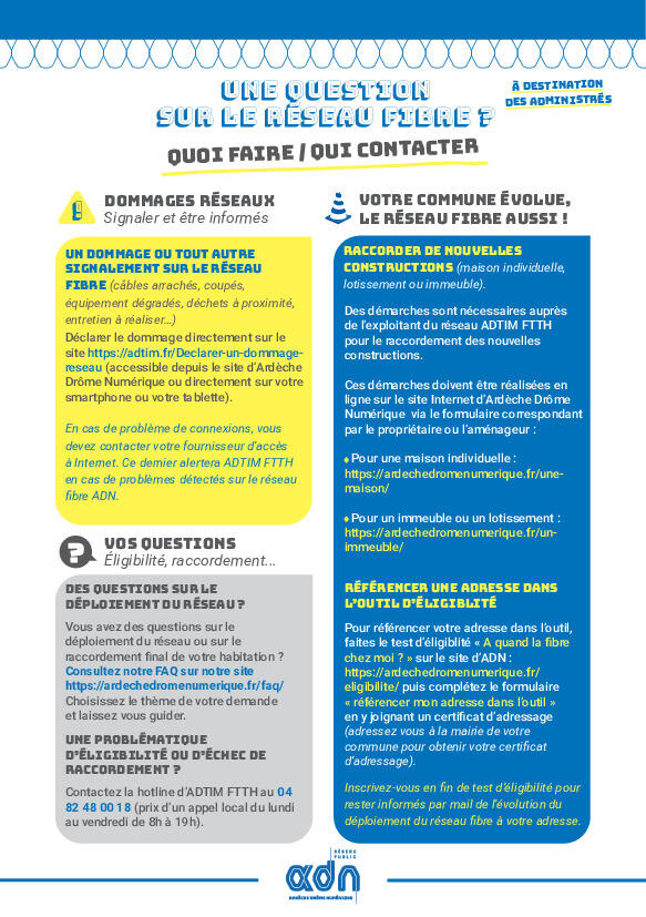 • le flyer «Une question sur le réseau fibre: quoi faire, qui contacter»  ;