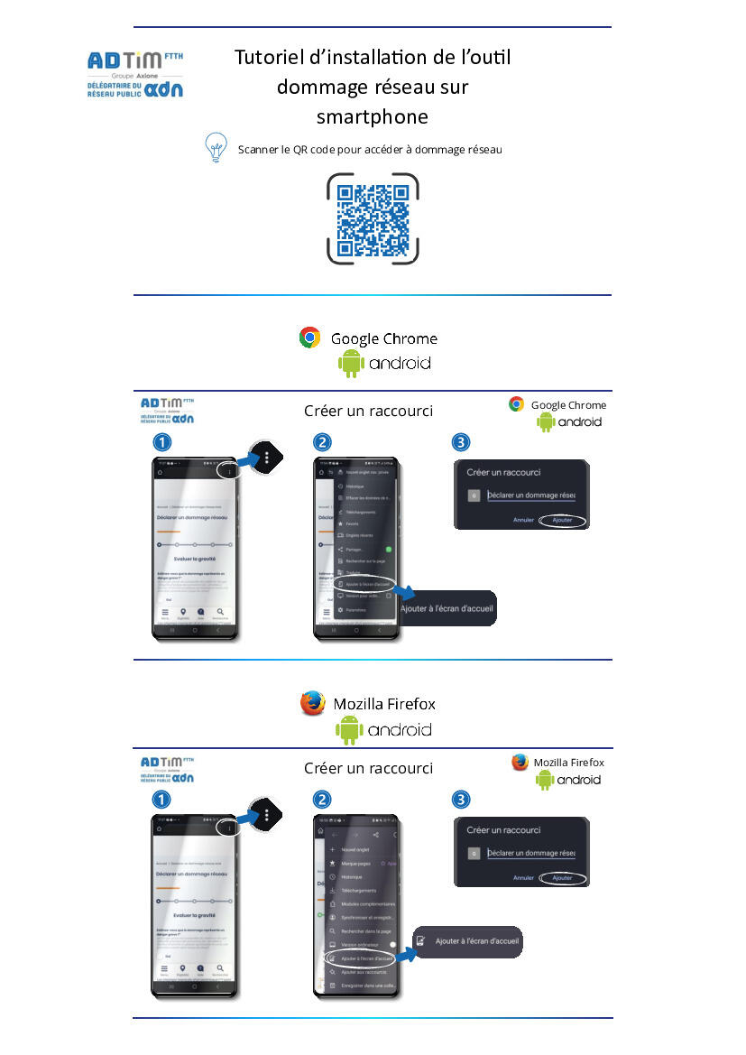 • le tutoriel d’installation de l’outil dommage réseau sur smartphone.