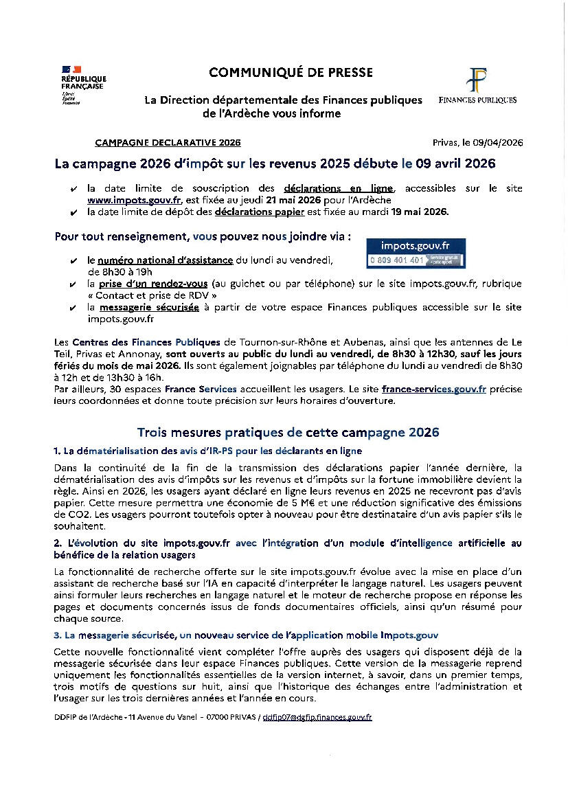 Votre mairie / Actualités / Ouverture de la campagne de déclaration des revenus 2025