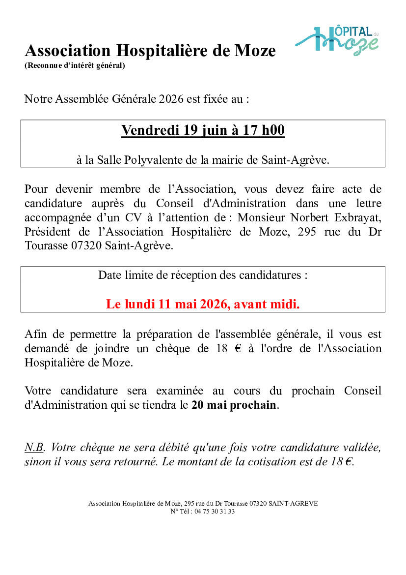 POUR DEVENIR MEMBRE DE L'ASSOCIATION HOSPITALIERE DE MOZE