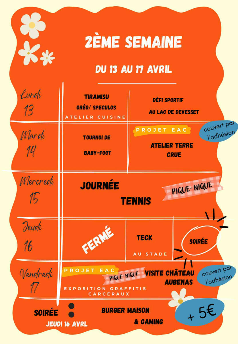 Programme du "Pôle Jeunesse" Vacances d'avril