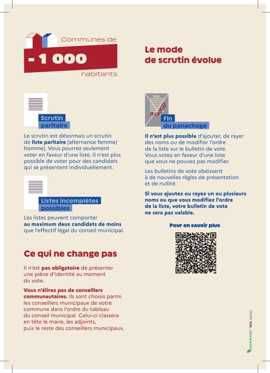 A cette occasion, les modalités de vote ont changé dans les communes de moins de 1000 habitants dont fait partie Neuflize, vous trouverez ci-joint les changements essentiels concernant cette élection.