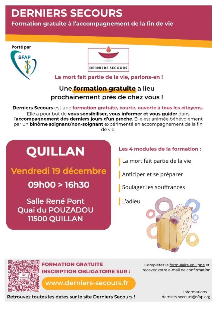 Formation gratuite à l'accompagnement de la fin de la vie 15/12/2025 VENDREDI 19 DECEMBRE 9 H à 16 H 30 QUILLAN