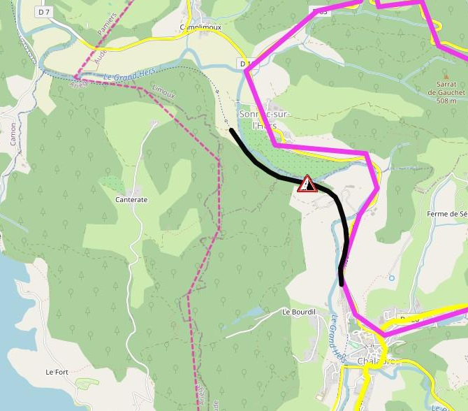 Suite à l'effondrement du talus longeant la rivière non loin du tunnel et plusieurs chutes d'arbres, il est interdit de circuler sur la voie verte entre Sonnac sur l'Hers et Chalabre !