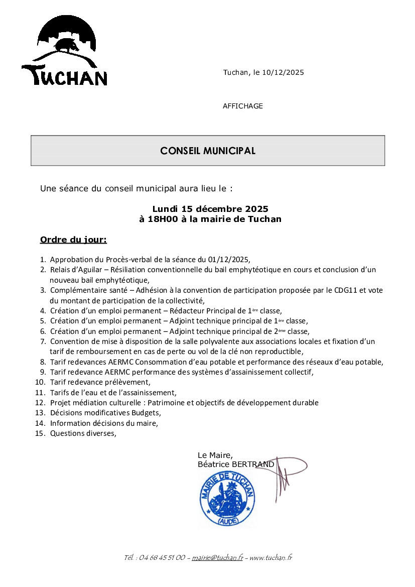 Toute l'actualité de Mairie de Tuchan