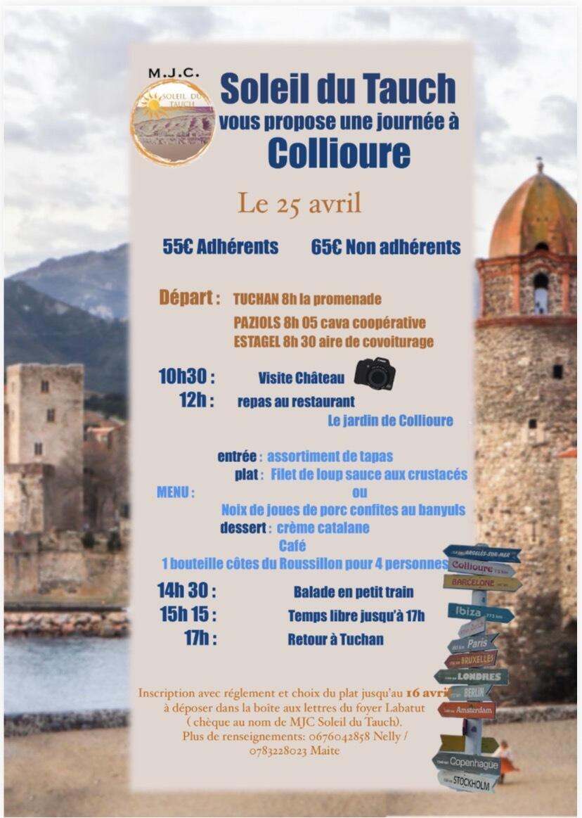 vous propose une journée à Collioure (visite du Château, restaurant, petit train...)