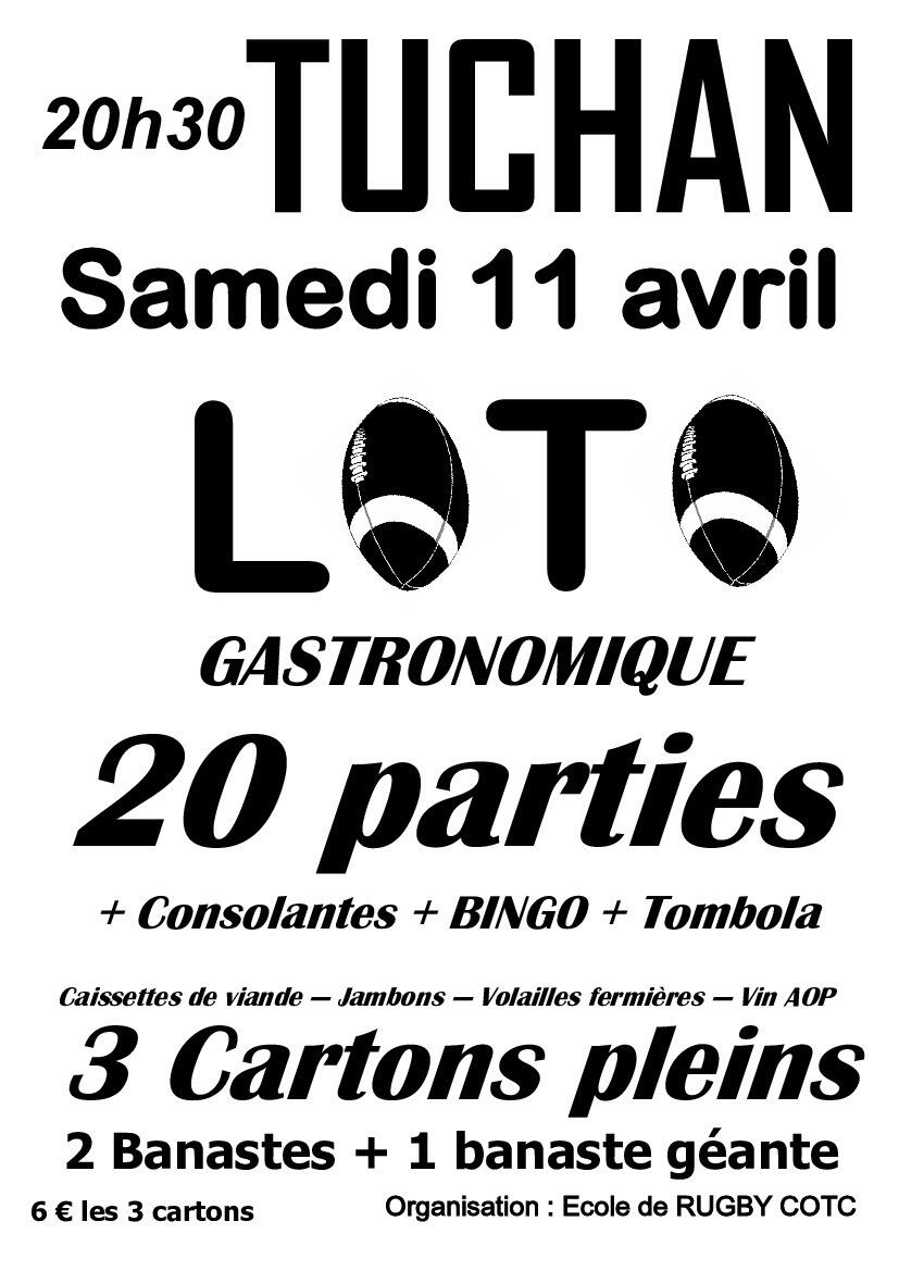 📢L'école de Rugby organise un LOTO à la Salle Polyvalente ce Samedi 11 Avril à 20h30 de nombreux lots seront à gagner, venez nombreux!📢