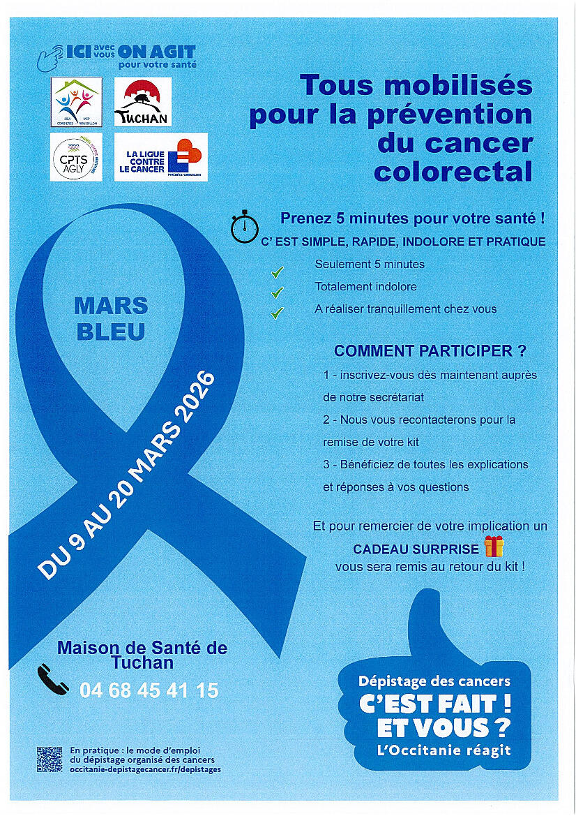MOBILISATION POUR LA PREVENTION DU CANCER COLORECTAL 02/03/2026 "Un cadeau surprise vous sera remis au retour du kit"😉