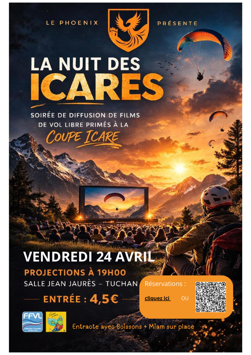 💫En lien avec la FFVL et les organisateurs de la coupe Icare, le club de Parapente "Les Phoenix du Château" de Tuchan organise "la Nuit Des Icares ". Une soirée conviviale qui est une occasion de découvrir les pratiques de Vols libres dont le parapente.